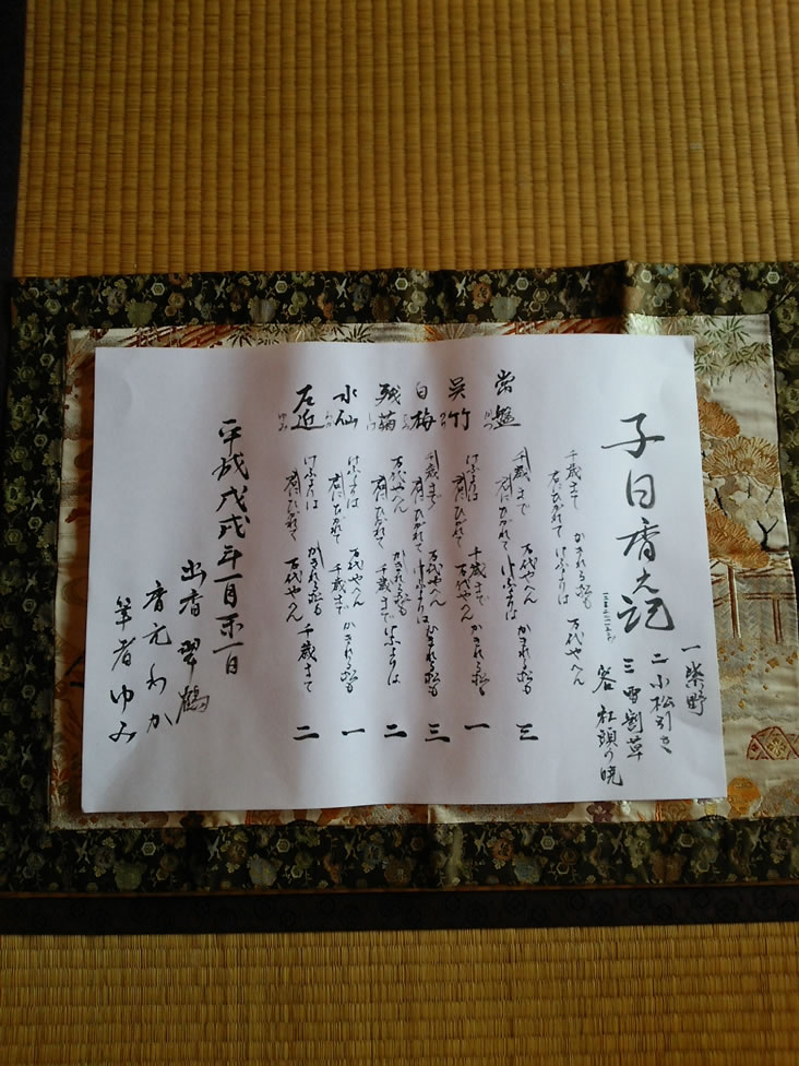 <初香会> 「子の日」に因んで「子の日香」の床の間の飾り。